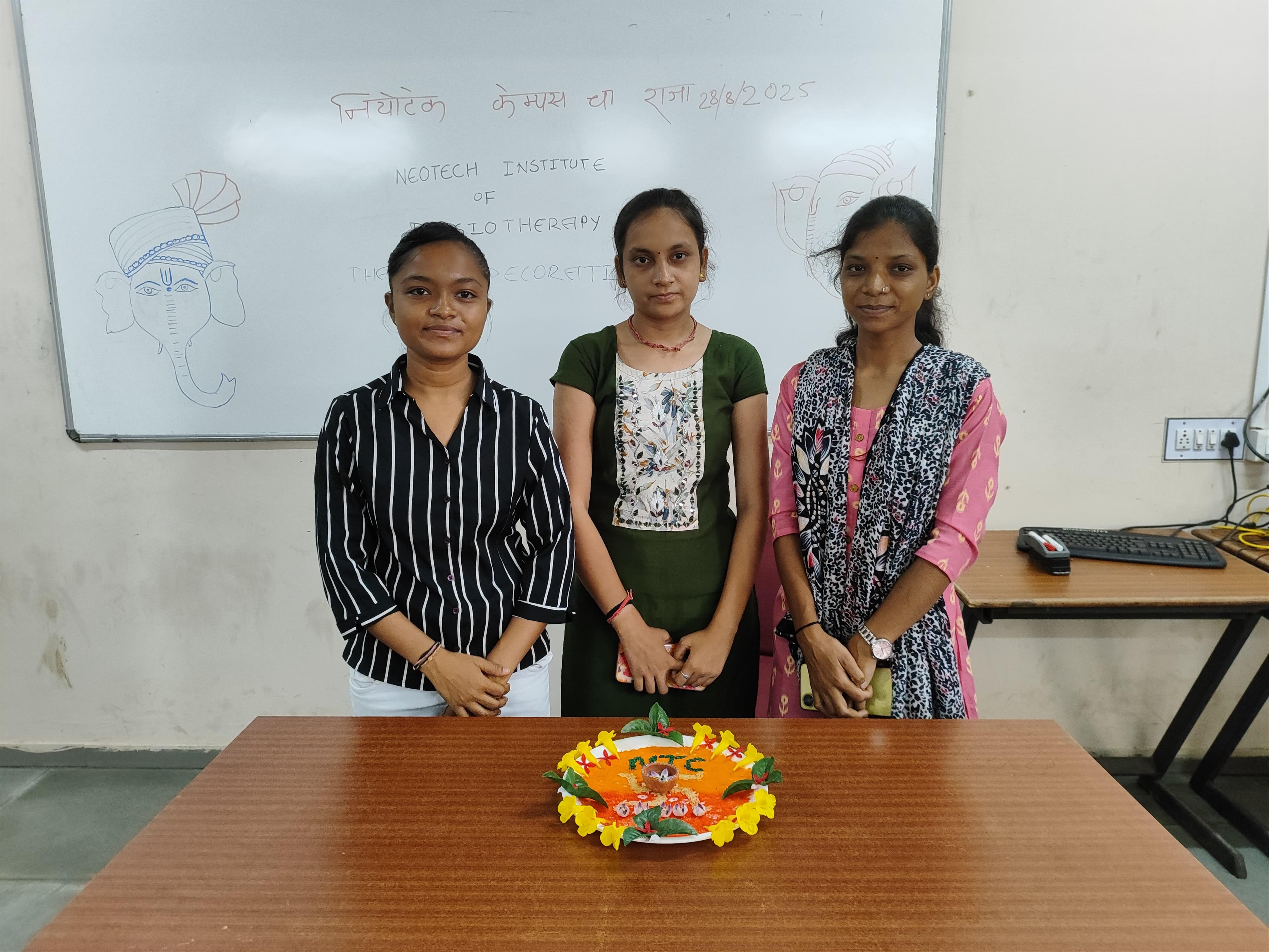 THE NEOTECH INSTITUTE OF PHYSIOTHERAPY ORGANIZED THE GANAPATI MAHOTSAV 2025 WITH ACTIVITIES LIKE THALI DECORATION AND RANGOLI MAKING TO FOSTER CULTURAL APPRECIATION, CREATIVITY, AND COMMUNITY BONDING AMONG STUDENTS. THESE EVENTS AIMED TO ENHANCE STUDENTS' UNDERSTANDING OF TRADITIONAL INDIAN ART FORMS AND PROMOTE TEAMWORK AND ARTISTIC